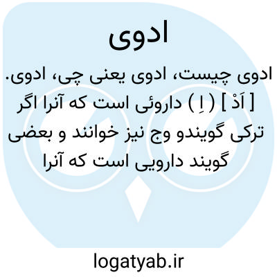ادوی. [ اَدْ ] ( اِ ) داروئی است که آنرا اگر ترکی گویندو وج نیز خوانند و بعضی گویند دارویی است که آنرا بعربی صبر خوانند. ( برهان قاطع ). وج باشد که بترکی اگر و بهندی بج خوانند. ( فرهنگ رشیدی ). اگیر. ادوی و اذوی بمعنی صبر زرد است و در زبان آذری امروز معمول است و بمعنی اگیر که شیح است و وج که کالاموس آزیاتیکوس باشد شنیده نشده است.