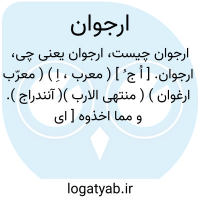 ارجوان. [ اُ ج ُ ] ( معرب، اِ ) ( معرّب ارغوان ) ( منتهی الارب )( آنندراج ). و مما اخذوه [ ای العرب ] من الفارسیة البهرمان و هو لون احمر و کذلک الارجوان و القرمز. ( ابن درید در جمهرة از سیوطی در المزهر ). سرخ. ( منتهی الارب ) ( مهذب الاسماء ). صُبغ سرخ. آتش گون. ( خلاص ). ارغوانی. سرخ روشن. || جامه های سُرخ. ( منتهی الارب ). || رنگی است سخت سرخ. || سرخی. || نشاسته. || درختی است که گل سرخ دارد. ( منتهی الارب ). ارغوان. ( مهذب الاسماء ). معرّب از ارغوان فارسی است. گرم مایل به اعتدال و مخرج اخلاط لزجه و جهت برودت معده و کلیه و تصفیه لون و طبیخ او مقیی و منقی آلات تنفس و معده و سوخته او حابس نزف الدّم و خضاب نیکو است و زنان از آن خطاط می سازند و ریشه بیخ او را چون بقدر دو درهم بجوشانند مقیی قوی است و مصلحش برگ عناب و نمام و بدلش صندل سرخ و نصف آن گلسرخ و دانه ارغوان در ادویه عین قایم مقام تشمیزج است. ( تحفه حکیم مؤمن ). ارجوان بهار درختی است که بپارسی آن را ارغوان گویند و آن بهار همچنان میخورند و طبیعت آن سرد و خشک و تر است و پوست بیخ آن اگر بجوشانند و آب آن بیاشامند قی تمام آورد و این مجربست و اگر چوب وی بسوزانند و بر ابرو مالند موی برویاند و سیاه و انبوه گرداند و اگر از بهار وی شرابی سازند منع خمار کند و نافع بود. ( اختیارات بدیعی ). و ضریر انطاکی در تذکره گوید: ارجوان معرب ارغوان است. در عربی هراحمری را ارجوان گویند و در فارسی نباتی است مخصوص،چوب آن سست و برگ وی سبط و سخت سرخ و حرّیف، غش آن با بقم کنند و فرق در رزانت و کمودت است و نیز با طقشون ( ؟ ) و اختلاف در رخاوت باشد، در اول گرم و معتدل است و مخرج اخلاط لزجه است و برودت معده و کلیه و کبدرا سود دارد و رنگ را صفا دهد. و طبیخ وی آلات تنفس و معده را با قی پاک کند و محروق آن نزف را حبس کندو خضابی نیکو است و غثیان آرد و مصلحش برگ عناب و نمّام و قدر شربتش تا چهار است ( ؟ ) و بدل آن صندل سرخ مثل آن و گل سرخ به اندازه نصف وی باشد - انتهی.