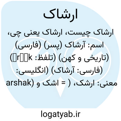 اسم: آرشاک (پسر) (فارسی) (تاریخی و کهن) (تلفظ: āršāk) (فارسی: آرشاک) (انگلیسی: arshak)