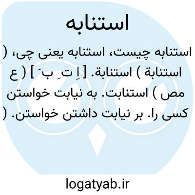 ( استنابة ) استنابة. [ اِ ت ِ ب َ ] ( ع مص ) استنابت. به نیابت خواستن کسی را. بر نیابت داشتن خواستن. ( زوزنی ). نیابت داشتن خواستن. ( تاج المصادر بیهقی ): ارسلان شاه را در شادیاخ به استنابت مثال فرستاد. ( جهانگشای جوینی ). || نایب شدن از کسی یا چیزی: