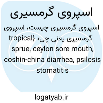 {tropical sprue, ceylon sore mouth, coshin-china diarrhea, psilosis stomatitis intertropica, stomatitis tropica} [تغذیه] نشانگان سوءجذبی که احتمالاً به دلیل کمبود تغذیه توأم با عفونت ایجاد می شود و به صورت بومی در کشورهای گرمسیری و نیمه گرمسیری وجود دارد متـ. نشانگان اسپروی گرمسیری tropical sprue syndrom