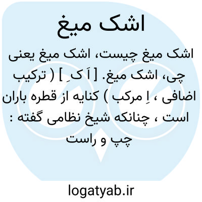 اشک میغ. [ اَ ک ِ ] ( ترکیب اضافی، اِ مرکب ) کنایه از قطره باران است، چنانکه شیخ نظامی گفته: