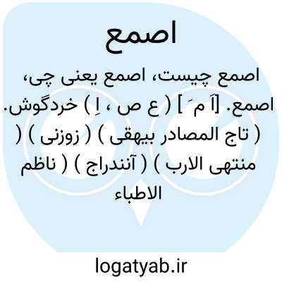 اصمع. [اَ م َ ] ( ع ص، اِ ) خردگوش. ( تاج المصادر بیهقی ) ( زوزنی ) ( منتهی الارب ) ( آنندراج ) ( ناظم الاطباء ). صغیرالاذن. ( اقرب الموارد ) ( قطر المحیط ). || شمشیر بران. ( منتهی الارب ) ( آنندراج ) ( ناظم الاطباء ). سیف قاطع. ( اقرب الموارد ) ( قطر المحیط ). || براشرف مواضع برآینده. ( آنندراج ) ( ناظم الاطباء ) ( منتهی الارب ). المترقی اشرف المواضع. ( اقرب الموارد ) ( قطر المحیط ). || مرد سراسیمه. || شوخ بی باک. || شتالنگ خرد و لطیف. ( منتهی الارب ) ( آنندراج ) ( ناظم الاطباء ). الکعب اللطیف المستوی.( اقرب الموارد ) ( قطر المحیط ). || الظلیم.( اقرب الموارد ). || گیاه که هنوز بار آن از غلاف برنیامده باشد. ( منتهی الارب ) ( آنندراج ) ( ناظم الاطباء ). النبت خرج له ثمر و لم ینفتق. ( اقرب الموارد ) ( قطر المحیط ). || پر دراز لطیف یا بهترین پرها. ج، صُمعان، صُمع. ( منتهی الارب ) ( آنندراج ) ( ناظم الاطباء ). الریش اللطیف العسیب و قیل افضل الریش.ج، صُمعان. ( اقرب الموارد ). || هشیاردل تیزخاطر بیدار. ( منتهی الارب ) ( آنندراج ). تیزخاطر. ( مهذب الاسماء ) ( زوزنی ). دل هوشیار و رای پرکار و باحزم. ( ناظم الاطباء ). القلب الذکی. ( اقرب الموارد ). القلب الذکی المتیقظ. ( قطر المحیط ). دل آگاه. ( لغت خطی ). زیرک. تیز هوش. بیداردل.