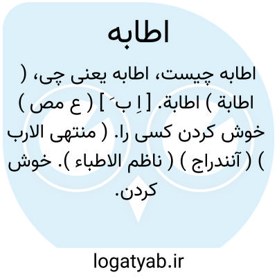 ( اطابة ) اطابة. [ اِ ب َ ] ( ع مص ) خوش کردن کسی را. ( منتهی الارب ) ( آنندراج ) ( ناظم الاطباء ). خوش کردن. ( تاج المصادر بیهقی ). چیزی را خوش کردن. ( از اقرب الموارد ). || خوشبوی گردانیدن. ( تاج المصادر بیهقی ). خوشبوی ساختن. ( منتهی الارب ) ( آنندراج ) ( ناظم الاطباء ). || استنجا کردن.( تاج المصادر بیهقی ) ( از اقرب الموارد ). استنجا نمودن. ( منتهی الارب ) ( آنندراج ) ( ناظم الاطباء ). || حلال و پاکیزه نمودن. ( ناظم الاطباء ) ( منتهی الارب ). حلال و پاکیزه کردن. ( آنندراج ). || مال پاکیزه و طیبی بدست آوردن. ( از اقرب الموارد ). || خوشمزه کردن طعام. ( منتهی الارب ) ( ناظم الاطباء ). خوشمزه ساختن طعام. ( آنندراج ). || برای مهمان طعام پاکیزه آوردن. ( از اقرب الموارد ). طعام لذیذ آوردن. || سخن شیرین و خوش گفتن. ( از منتهی الارب ) ( آنندراج ) ( ناظم الاطباء ). کلام خوش گفتن. ( از اقرب الموارد ). || پاک کردن به شستن. || پاک یافتن چیزی. || پسران نیک سیرت زادن. ( منتهی الارب ) ( آنندراج ) ( ناظم الاطباء ). پسران طیب آوردن. ( از اقرب الموارد ). || نکاح نمودن زن حلال را. ( منتهی الارب ) ( ناظم الاطباء )( آنندراج ). زناشویی حلال کردن. ( از اقرب الموارد ).