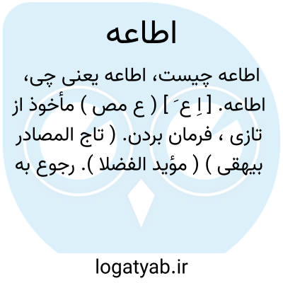 اطاعه. [ اِ ع َ ] ( ع مص ) مأخوذ از تازی، فرمان بردن. ( تاج المصادر بیهقی ) ( مؤید الفضلا ). رجوع به اطاعت و اطاعة شود.