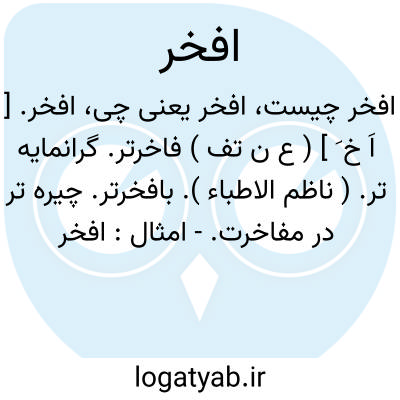 افخر. [ اَ خ َ ] ( ع ن تف ) فاخرتر. گرانمایه تر. ( ناظم الاطباء ). بافخرتر. چیره تر در مفاخرت.