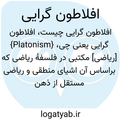 {Platonism} [ریاضی] مکتبی در فلسفۀ ریاضی که براساس آن اشیای منطقی و ریاضی مستقل از ذهن انسان هستند