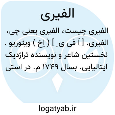 الفیری. [ اَ فی ی ِ ] ( اِخ ) ویتوریو. نخستین شاعر و نویسنده تراژدیک ایتالیایی. بسال 1749 م. در استی متولد شد و1803 م.درگذشت. آثار تراژدی بسیاری از او بجا مانده است.