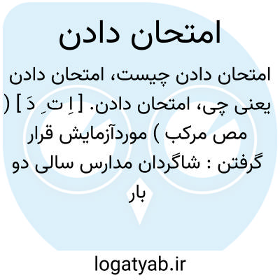 امتحان دادن. [ اِ ت ِ دَ ] ( مص مرکب ) موردآزمایش قرار گرفتن: شاگردان مدارس سالی دو بار در خرداد و شهریور امتحان میدهند. رجوع به امتحان شود.