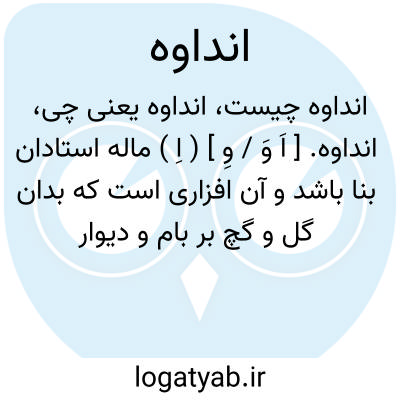 انداوه. [ اَ وَ / وِ ] ( اِ ) ماله استادان بنا باشد و آن افزاری است که بدان گل و گچ بر بام و دیوار مالند. ( برهان قاطع ) ( آنندراج ). ماله بنایان که بدان اندود کنند و بام اندایند. اندا و انداوه بدل یکدیگرند. ( انجمن آرا ). ماله که بدان اندود کنند. ( فرهنگ سروری ). مسجه. مسیعه. ماله که آلت اندایش است. ( شرفنامه منیری ). || شکوه و شکایت. شکوه. || غیبت. ( برهان قاطع ) ( انجمن آرا ) ( آنندراج ). و رجوع به اندابه و اندایه و ماله شود.