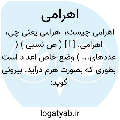اهرامی. [ اَ ] ( ص نسبی ) ( عددهای... ) وضع خاص اعداد است بطوری که بصورت هرم درآید. بیرونی گوید: عددهای اهرامی کدامند؟ این آن است که مربعهای متوالی یک بر دیگری نهی تا همچون آن هرمین گردند که برابر مصرند. ( از التفهیم، یادداشت بخط مرحوم دهخدا ).