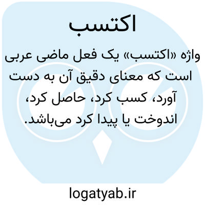 واژه «اِکتَسَبَ» یک فعل ماضی عربی است که معنای دقیق آن به دست آورد، کسب کرد، حاصل کرد، اندوخت یا پیدا کرد می‌باشد و به عملی اشاره دارد که در آن فرد چیزی را از طریق تلاش و کوشش به دست می‌آورد. این واژه می‌تواند شامل کسب مهارت، تجربه، سود، دانش، فضیلت یا مشروعیت باشد و مترادف‌هایی مانند «تحصیل کرد» یا «بدست آورد» دارد. «اکتسب» از ریشه «ک-س-ب» مشتق شده و با واژه‌های «کسب» و «اکتساب» مرتبط است که معنای به‌دست آوردگی و دستاورد را منتقل می‌کنند. این فعل نشان‌دهنده اقدام فعال و کوشش شخص در به دست آوردن چیزی است و نه تصادف یا هدیه‌ای بدون تلاش. کاربرد آن در امور مادی و معنوی یکسان است و برای اشاره به اندوختن مهارت، تجربه یا مال به کار می‌رود. بنابراین معنای دقیق «اکتسب» همان به‌دست آوردن یا کسب کردن چیزی از طریق کوشش و فعالیت فردی است.