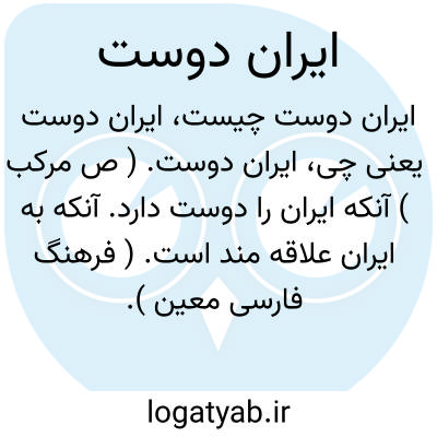 ایران دوست. ( ص مرکب ) آنکه ایران را دوست دارد. آنکه به ایران علاقه مند است. ( فرهنگ فارسی معین ). دوست دارنده ایران.