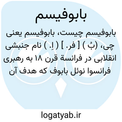 (بُ ) [ فر. ] ( اِ. ) نام جنبشی انقلابی در فرانسة قرن ۱۸ به رهبری فرانسوا نوئل بابوف که هدف آن ایجاد جمهوری برابری بود - رفتار یکسان با همة افراد در همة امور اجتماعی - بابوفی ها نمایندة ماتریالیسم قرن ۱۸ فرانسه و اندیشه های انقلابی آن و نیز سردمدار تند