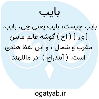 بایب. [ ی ِ ] ( اِخ ) گوشه عالم مابین مغرب و شمال، و این لفظ هندی است. ( آنندراج ). در ماللهند نقطه جهت میان بسجم و اوتر و برابر زحل آمده. ( ماللهند ص 145 و 146 ). وبین شمال و مغرب ( شمال غربی ) محسوب شده است. حمداﷲ مستوفی گوید: حکماء هند بخش ربع مسکون را بصورت سه در سه نهاده اند: بخش جنوبی را دکشن خوانند و آن زمین تازیان است و بخش شمالی را اوتر خوانند و آن ترکان راست و بخش شرقی را بورب خوانند و اهل چین و ماچین راست و بخش غربی را بسجم خوانند قوم مصر و بربر راست وبخش زاویه مابین جنوب و شرق اگنی گویند هندوان راست و بخش زاویه مابین شرق و شمال ایش خوانند قوم ختای و ختن راست و بخش زاویه مابین شمال و غرب بایب گویند اهل روم و فرنگ راست. ( از نزهةالقلوب ج 3 ص 20 ).