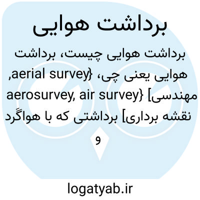 {aerial survey, aerosurvey, air survey} [مهندسی نقشه برداری] برداشتی که با هواگَرد و به کمک عکس برداری هوایی انجام می شود