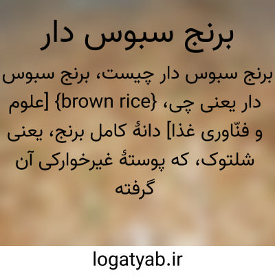 {brown rice} [علوم و فنّاوری غذا] دانۀ کامل برنج، یعنی شلتوک، که پوستۀ غیرخوارکی آن گرفته شده باشد