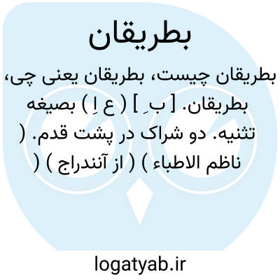 بطریقان. [ ب ِ ] ( ع اِ ) بصیغه تثنیه. دو شراک در پشت قدم. ( ناظم الاطباء ) ( از آنندراج ) ( منتهی الارب ). دو تسمه است که رویه کفش صندل ( چاروق ) را بزیره آن متصل میکند. ( از دزی ج 1 ص 94 ).