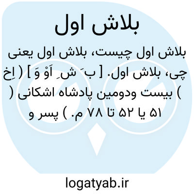 بلاش اول. [ ب َ ش ِ اَوْ وَ ] ( اِخ ) بیست ودومین پادشاه اشکانی ( 51 یا 52 تا 78 م. ) پسر و جانشین ونن دوم. بلاش آخرین پادشاه بزرگ اشکانی است. پس از فرونشاندن شورشهای داخلی، سلطنت آذربایجان را به برادرش پاکر داد، و ارمنستان را گرفته به برادر دیگر خود تیرداد واگذاشت. نرون امپراطور روم، کوربولو را مأمور بازگرفتن ارمنستان کرد. جنگ ایران و روم بر سر این ناحیه از 54تا 63م. دوام یافت. سرانجام طرفین صلح کردند و قرار شد تیرداد پادشاه ارمنستان باشد ولی تاج سلطنت را در روم از نرون بگیرد. پذیرایی از تیرداد در روم بسال 66 م. بسیار مجلل بود و از آن زمان سلاطین ارمنستان ازخاندان اشکانی ولی تابع روم بودند. صلحی که در زمان بلاش بین ایران و روم برقرار شد تا سال 115 م. که امپراطور ترایانوس به ایران حمله کرد، دوام یافت. گویند اوستا را که در زمان حمله اسکندر مقدونی پراکنده شده بود، جمعآوری کرد. بعد از بلاش اول دوره آشفتگی سخت و ممتدی پیش آمد. ( از دایرةالمعارف فارسی ) ( از فرهنگ فارسی معین ). و رجوع به خرده اوستا ص 32 و تاریخ ایران باستان ص 2459 و فرهنگ ایران باستان ص 7 شود.