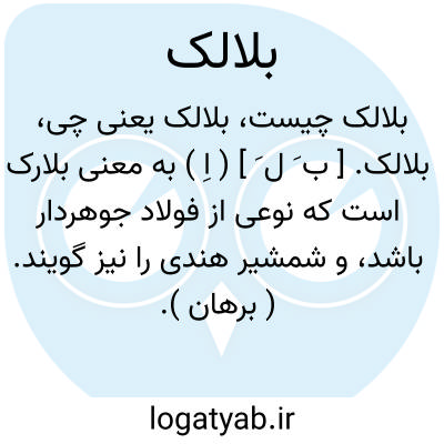 بلالک. [ ب َ ل َ ] ( اِ ) به معنی بلارک است که نوعی از فولاد جوهردار باشد، و شمشیر هندی را نیز گویند. ( برهان ). بلارک. رجوع به بلارک شود:
