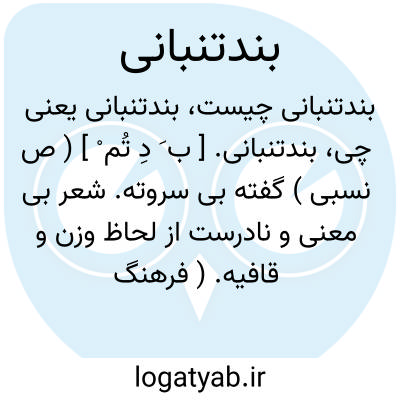 بندتنبانی. [ ب َ دِ تُم ْ ] ( ص نسبی ) گفته بی سروته. شعر بی معنی و نادرست از لحاظ وزن و قافیه. ( فرهنگ فارسی معین ). سست و رکیک و بی معنی و مفهوم ( بیشتر در مورد شعر به کار میرود ). ( فرهنگ عامیانه جمالزاده ).