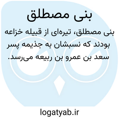 [ویکی شیعه] بنی مُصْطَلِق، طایفه ای از خزاعه بودند. نسب این طایفه به جَذیمه پسر سعد بن عمرو بن ربیعه می رسد. ابن دُرَید معتقد است جذیمه به این جهت مصطلق نامیده شده که او دارای صدایی زیبا و بلند بوده است.