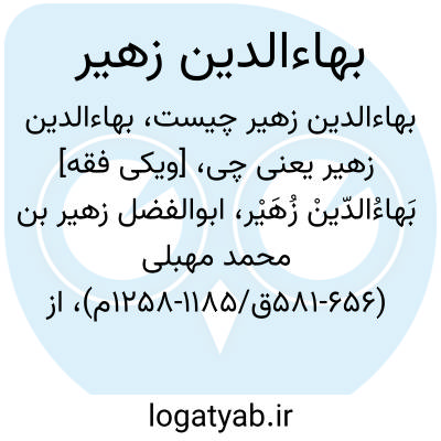 [ویکی فقه] بَهاءُالدّینْ زُهَیْر، ابوالفضل زهیر بن محمد مهبلی (۵۸۱-۶۵۶ق/۱۱۸۵-۱۲۵۸م)، از شاعران معروف دورۀ ایوبی می باشد.