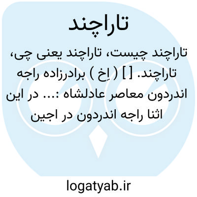 تاراچند. [ ] ( اِخ ) برادرزاده راجه اندردون معاصر عادلشاه:... در این اثنا راجه اندردون در اجین بی سامانگی پادشاه دیده بغی ورزید عادلشاه به امرایانی ( کذا ) که با او اتفاق داشتند از گوالیر برآمده بکوچ متواتر در نواحی اجین رسید. راجه از آمدن سپاه پادشاهی خبر یافته برادرزاده خود را که تاراچند نام داشت با پاره ای سپاه در اجین گذاشته و خود با لشکر بسیار ده گروهی از اجین برآمده مقابل لشکر پادشاهی شد... ( تاریخ شاهی ص 293 ).