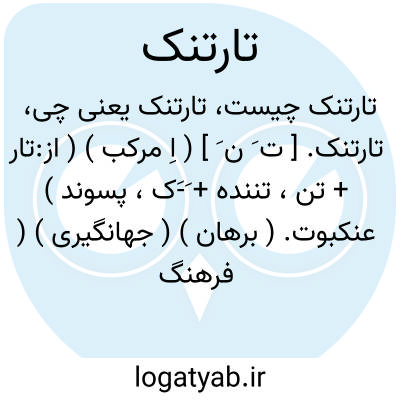 تارتنک. [ ت َ ن َ ] ( اِ مرکب ) ( از:تار + تن، تننده + َ-َک، پسوند ) عنکبوت. ( برهان ) ( جهانگیری ) ( فرهنگ نظام ) ( آنندراج ) ( انجمن آرا ). این کاف، کاف تصغیر است، تارتن نیز همان است: