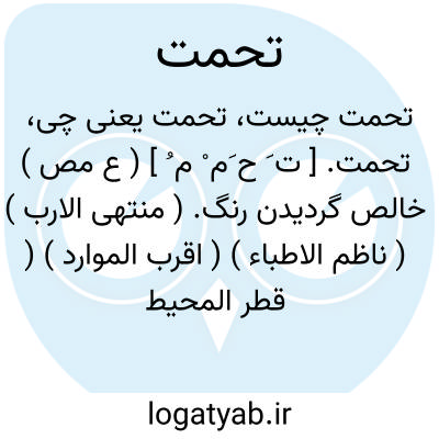 تحمة. [ ت ُ م َ ] ( ع اِمص ) سخت سیاهی. ( منتهی الارب ) ( ناظم الاطباء ) ( قطر المحیط ).
