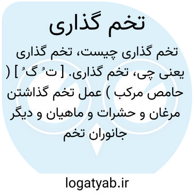 تخم گذاری. [ ت ُ گ ُ ] ( حامص مرکب ) عمل تخم گذاشتن مرغان و حشرات و ماهیان و دیگر جانوران تخم گذار: هنوز فصل تخم گذاری مرغان آبی فرانرسیده است.