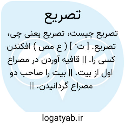 [ویکی فقه] تصریع (ادبیات فارسی). تصریع در ادبیات فارسی لفظی است که به دو معنای عام (مصرّع بودن مطلع قصیده، غزل، رباعی، دوبیتی و ابیات مثنوی) و خاص (مصرع سازی در اثنای قصیده یا تمام قصیده و غزل) به کار می رود.