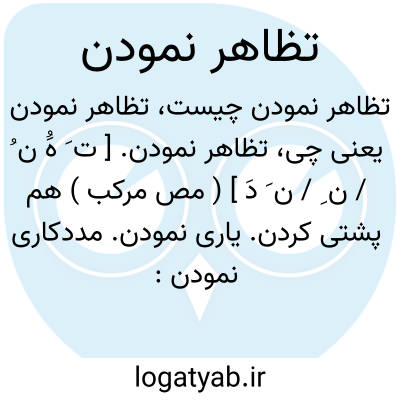 تظاهر نمودن. [ ت َ هَُ ن ُ / ن ِ / ن َ دَ ] ( مص مرکب ) هم پشتی کردن. یاری نمودن. مددکاری نمودن: ابوعلی همچنان به شعار دعوت نوح تظاهر می نمود و در ولایات خویش خطبه و سکه بنام او می کرد. ( ترجمه تاریخ یمینی چ اول تهران ص 112 ). مشایخ بخارا بر عقب او بفرستاد و تضرعها بسیار نمود و او را با مقر ملک خویش خواند و به طاعت و متابعت او تظاهر نمود. ( ترجمه تاریخ یمینی ایضاً ص 185 ). به طاعت او تظاهر نمود و از صدق موالات در انتظار وصول رایات او اعلام داد. ( ترجمه تاریخ یمینی ایضاً ص 262 ). || در اصطلاح امروز ظاهرسازی کردن. نمودن چیزی را بی آنکه او را اصلی باشد. و رجوع به تظاهر شود.