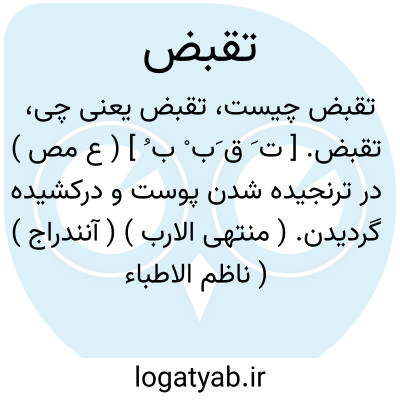 تقبض. [ ت َ ق َب ْ ب ُ ] ( ع مص ) در ترنجیده شدن پوست و درکشیده گردیدن. ( منتهی الارب ) ( آنندراج ) ( ناظم الاطباء )( از اقرب الموارد ). || باهم آمدن. ( تاج المصادر بیهقی ). فراهم آمدن. ( منتهی الارب ) ( آنندراج ) ( ناظم الاطباء ). تجمع. ( اقرب الموارد ). || برجستن بر کسی. ( منتهی الارب ) ( آنندراج ) ( ناظم الاطباء ). برجهیدن. || توقف بر کاری. ( از اقرب الموارد ). || در گرفته شدن از چیزی. ( منتهی الارب ) ( آنندراج ) ( ناظم الاطباء ) ( از اقرب الموارد ).