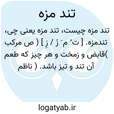 تندمزه. [ ت ُ م َ زَ / زِ ] ( ص مرکب )قابض و زمخت و هر چیز که طعم آن تند و تیز باشد. ( ناظم الاطباء ). رجوع به تند و دیگر ترکیبهای آن شود.
