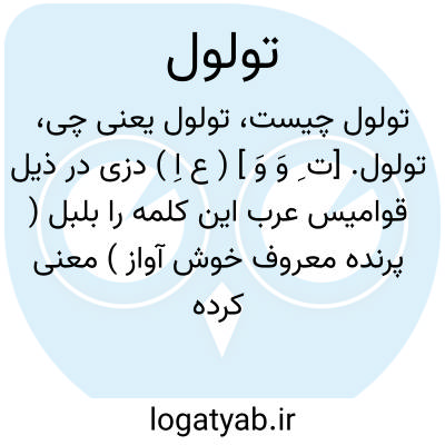 تولول. [ت ِ وَ وَ ] ( ع اِ ) دزی در ذیل قوامیس عرب این کلمه را بلبل ( پرنده معروف خوش آواز ) معنی کرده است. رجوع به دزی ج 1 ص 155 شود.