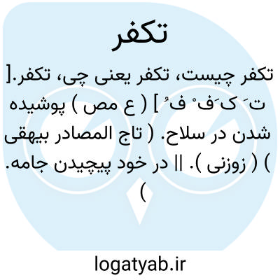 تکفر.[ ت َ ک َف ْ ف ُ ] ( ع مص ) پوشیده شدن در سلاح. ( تاج المصادر بیهقی ) ( زوزنی ). || در خود پیچیدن جامه. ( از اقرب الموارد ). پوشده شدن. ( ناظم الاطباء ).