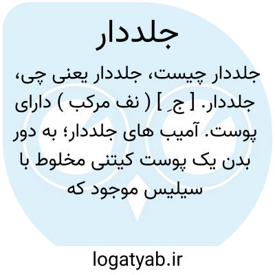 جلددار. [ ج ِ ] ( نف مرکب ) دارای پوست. آمیب های جلددار؛ به دور بدن یک پوست کیتنی مخلوط با سیلیس موجود که بواسطه خود حیوان ترشح شده است. ( جانورشناسی عمومی مصطفی فاطمی ص 95 ).