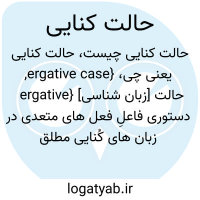 {ergative case, ergative} [زبان شناسی] حالت دستوری فاعلِ فعل های متعدی در زبان های کُنایی مطلق (ergative-absolutive ) متـ. کُنایی