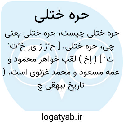 حره ختلی. [ ح ُرْ رَ ی ِ خ ُت ْ ت َ ] ( اِخ ) لقب خواهر محمود و عمه مسعود و محمد غزنوی است. ( تاریخ بیهقی چ ادیب ص 70، 116، 205 و چ فیاض ص 13، 18،77، 122، 255، 639، 660 ). رجوع به حره زینب شود.