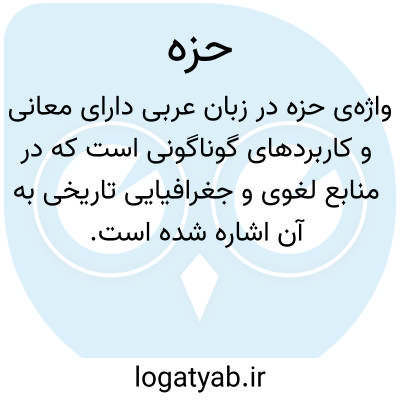 واژه‌ی حِزّه در زبان عربی دارای معانی و کاربردهای گوناگونی است که در منابع لغوی و جغرافیایی تاریخی به آن اشاره شده است. در یک نگاه کلی، این واژه به‌عنوان صفت یا اسم به‌کار رفته و معانیای همچون نیفه (پرده یا حجاب)، گردن و یا پاره‌گوشت دارد. به‌طور خاص، در اشاره به پاره‌گوشت، معمولاً به قطعه‌ای دراز از گوشت که اغلب به جگر مرتبط است، گفته می‌شود. جمع این کلمه نیز به صورت حُزَز آورده شده است.