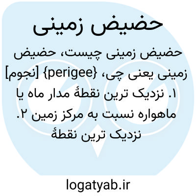 {perigee} [نجوم] 1. نزدیک ترین نقطۀ مدار ماه یا ماهواره نسبت به مرکز زمین 2. نزدیک ترین نقطۀ مسیر ظاهری سیاره به دور زمین در الگوی زمینْ مرکزی متـ. حضیض 2