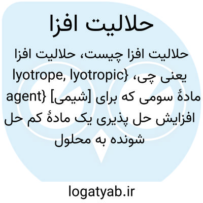 {lyotrope, lyotropic agent} [شیمی] مادۀ سومی که برای افزایش حل پذیری یک مادۀ کم حل شونده به محلول اضافه می شود