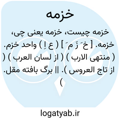 خزمه. [ خ َ زَ م َ ] ( ع اِ ) واحد خزم. ( منتهی الارب ) ( از لسان العرب ) ( از تاج العروس ). || برگ بافته مقل. ( منتهی الارب ) ( از لسان العرب ).