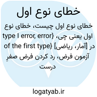 {type I error, error of the first type} [آمار، ریاضی] در آزمون فرض، رد کردن فرض صفرِ درست