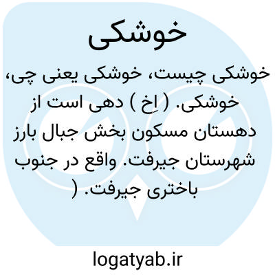 خوشکی. ( اِخ ) دهی است از دهستان مسکون بخش جبال بارز شهرستان جیرفت. واقع در جنوب باختری جیرفت. ( از فرهنگ جغرافیایی ایران ج 8 ).