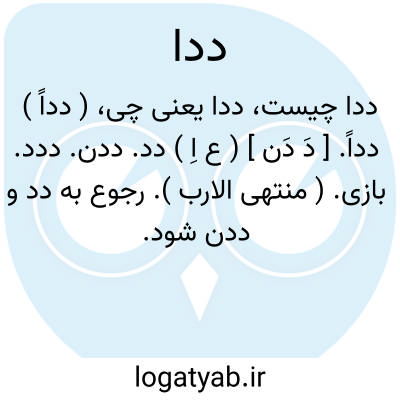 ( دداً ) دداً. [ دَ دَن ] ( ع اِ ) دد. ددن. ددد. بازی. ( منتهی الارب ). رجوع به دد و ددن شود.