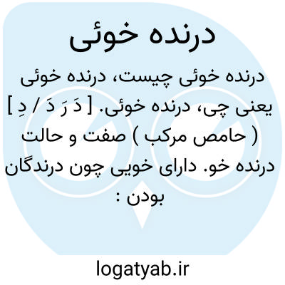 درنده خوئی. [ دَ رَ دَ / دِ ] ( حامص مرکب ) صفت و حالت درنده خو. دارای خویی چون درندگان بودن: