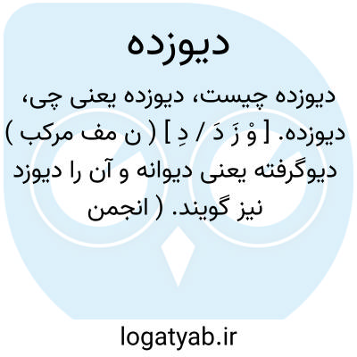 دیوزده. [ وْ زَ دَ / دِ ] ( ن مف مرکب ) دیوگرفته یعنی دیوانه و آن را دیوزد نیز گویند. ( انجمن آرا ). دیوگرفته. ( مجموعه مترادفات ص 11 ). مأروض. جن زده. مصروع. مجنون. دیودیده.