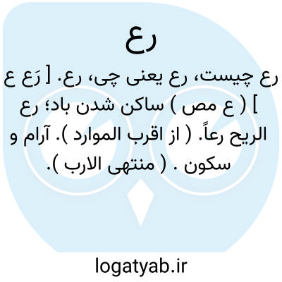 رع. [ رَع ع ] ( ع مص ) ساکن شدن باد؛ رع الریح رعاً. ( از اقرب الموارد ). آرام و سکون. ( منتهی الارب ).